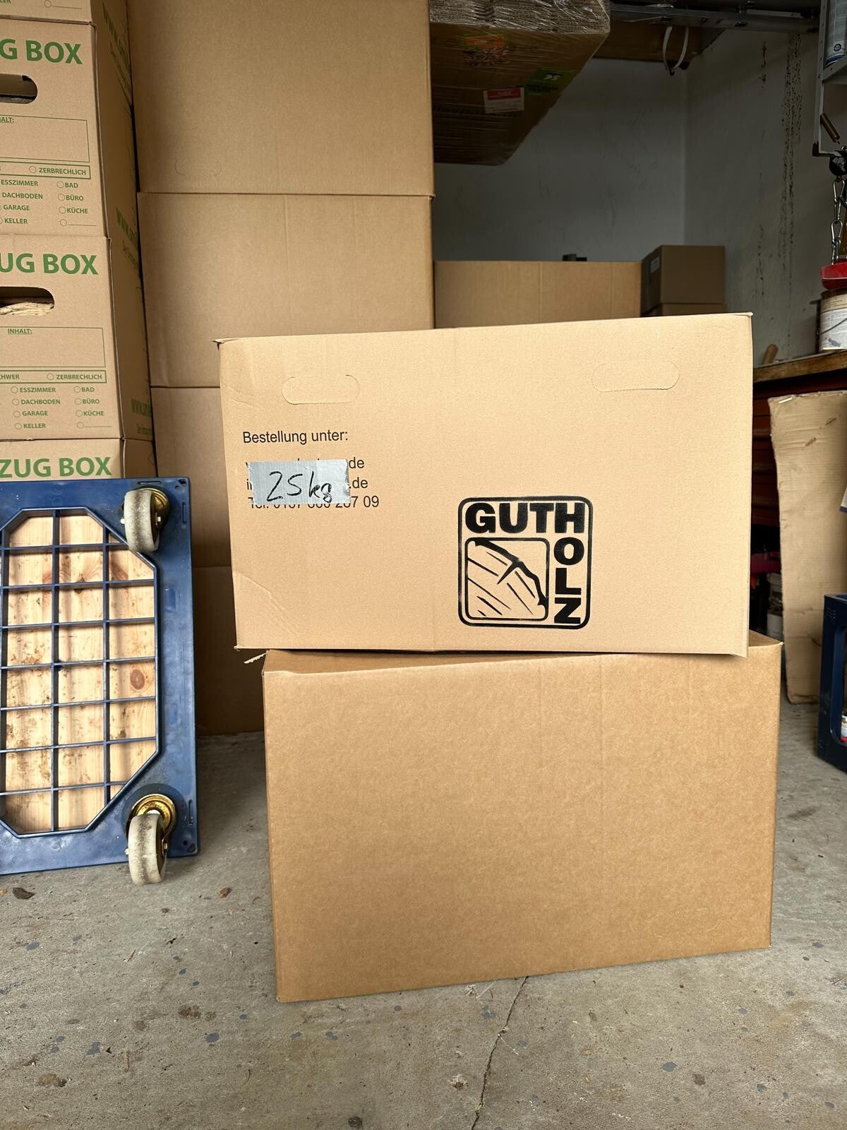 Komfortabel: Ofenfertig in praktischen Kartons – keine sperrigen Holzstapel mehr.